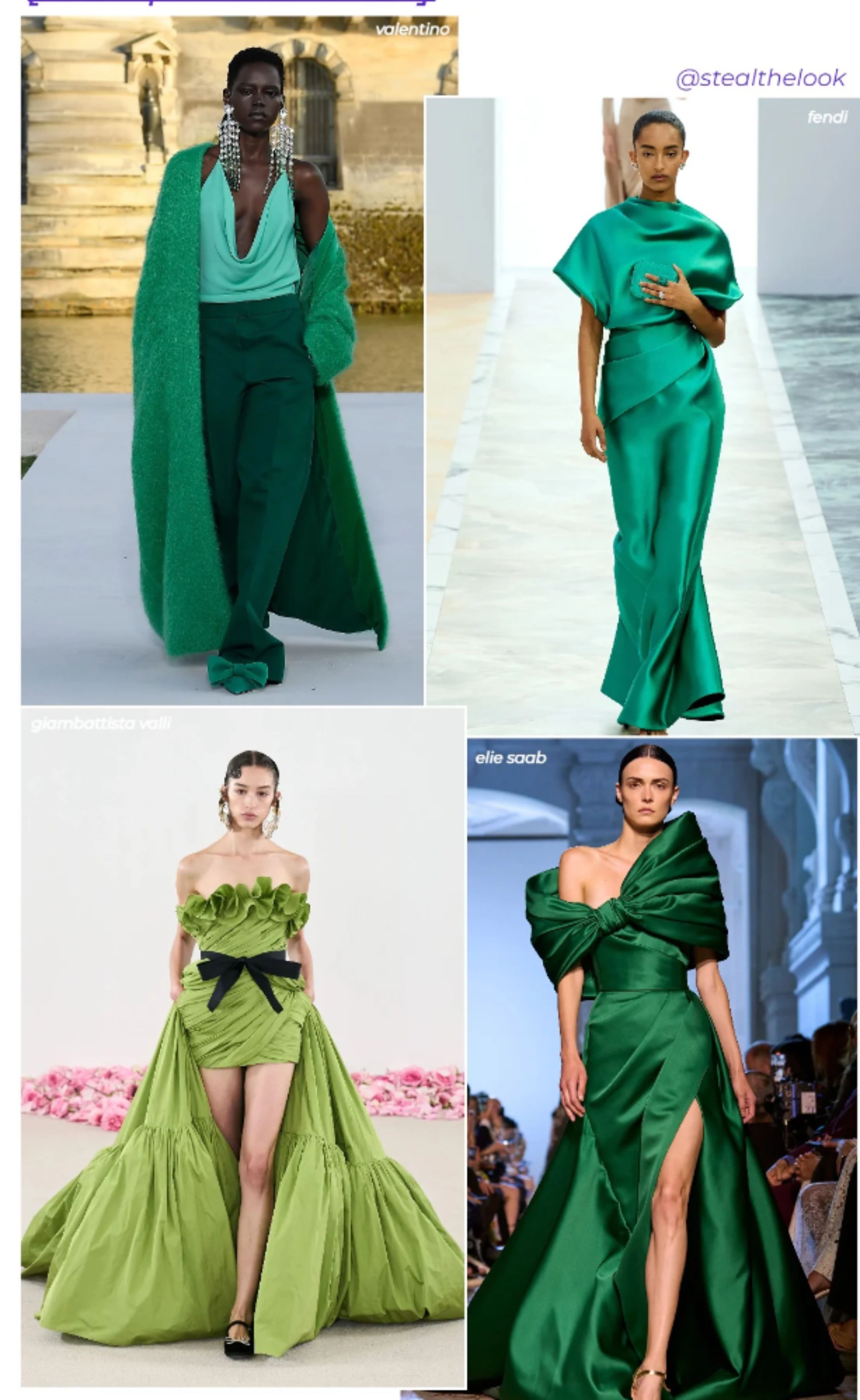 As passarelas são um ótimo termômetro na hora de prever próximas tendências, e na alta-costura desse ano a cor não passou despercebida. Com um destaque especial para a Valentino, que apresentou uma coleção de cair o queixo com muitas tonalidades incríveis, incluindo o verde. Outras grifes como Fendi e Giambattista Valli também investiram na cor - e nós amamos!