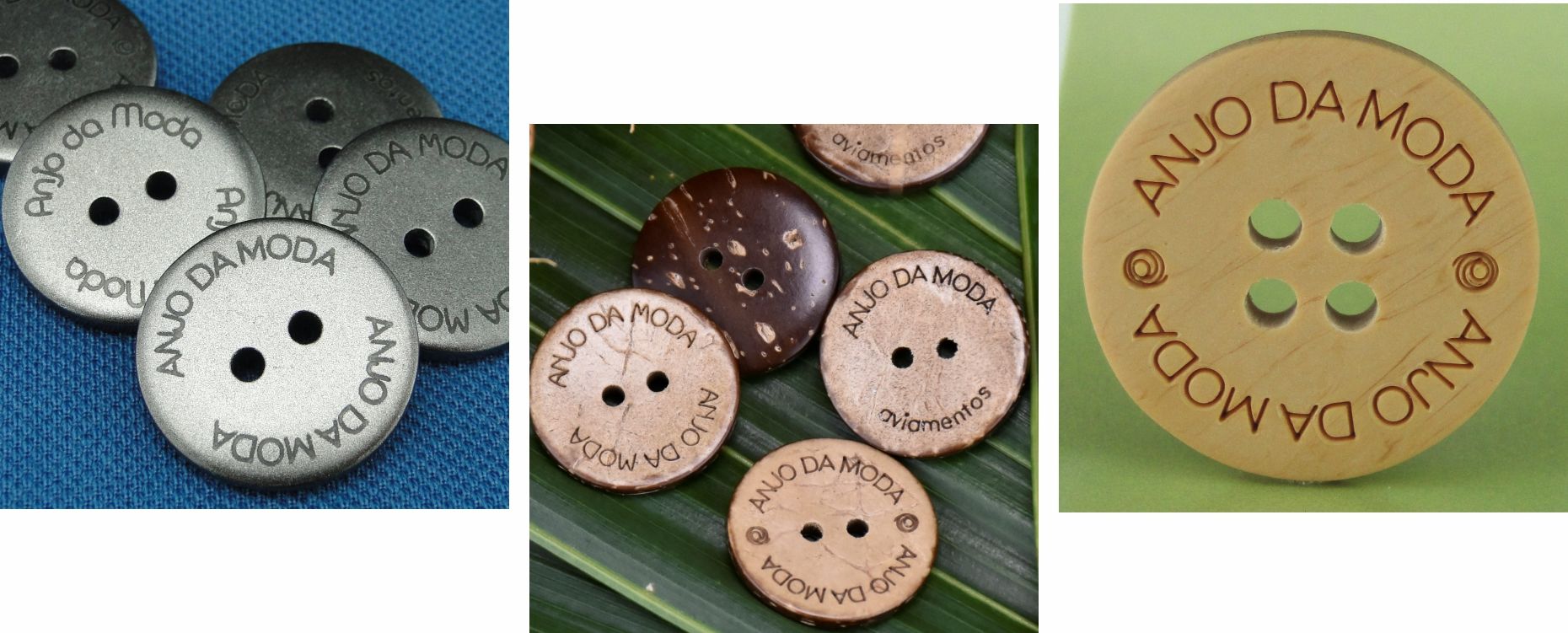 Na ANJO DA MODA você pode personalizar os botões com a sua marca, transmitindo sofisticação e atraindo olhares mais apurados que contribuem com a valorização e a divulgação da sua marca no mercado.