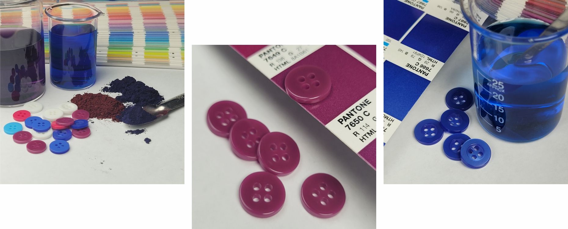 A ANJO DA MODA possui tingimento próprio, possibilitando aos seus clientes, escolher as cores dos botões conforme a sua necessidade, de forma prática e ágil.